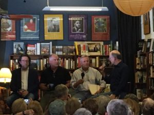 My signing time was 1:30pm, and he was going to speak at 5pm. I took a break at Starbucks and then went over to Off Square Books to hear the talk.